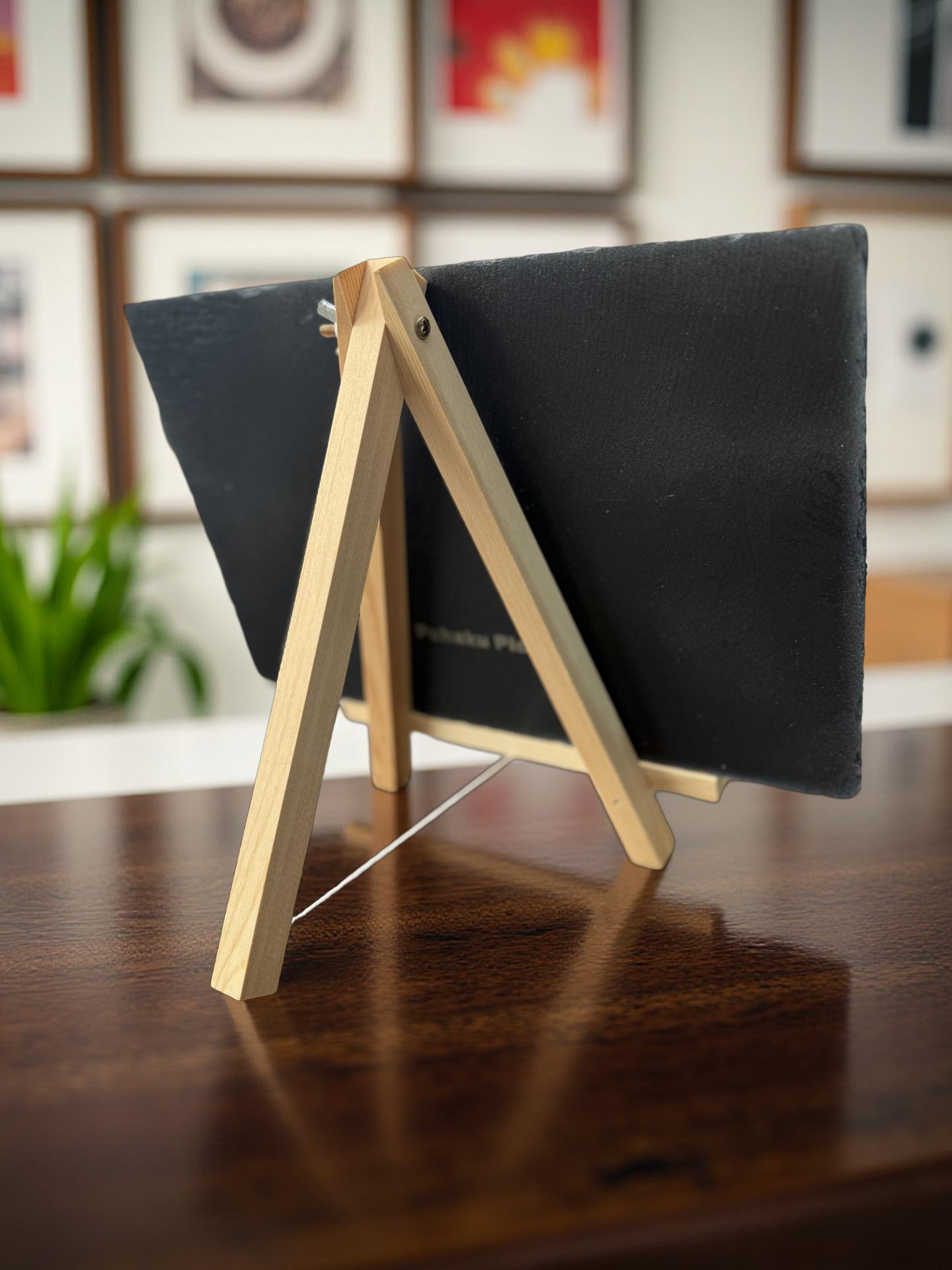 Upgrade your display stands with our elegant Easel Display Stand. Perfect for showcasing your Pohaku Pic, it adds a touch of sophistication and elevates your new artwork to the level of a masterpiece. Make a statement with this premium upgrade and truly showcase your artistic style.